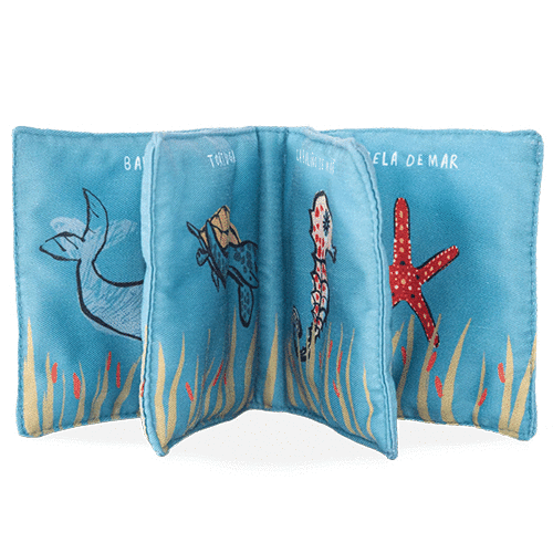 Un libro de tea diferente para mergullarnos no fondo do mar. Aletas e burbullas é un libro de tea perfecto para iniciar o hábito da lectura e fortalecer o vínculo co bebé a través da observación e do xogo. Un formato ideal para estimular a curiosidade, a adquisición da linguaxe e a imaxinación de maneira lúdica e próxima ao tempo que se adquire un vocabulario básico relacionado coa vida mariña. As ilustracións sinxelas e atractivas de Mercè Galí mostran algunhas das especies que poboan o océano, compartindo escena cun elemento vexetal que axuda a relacionar esta proposta con Pelos e plumas, libro publicado ao mesmo tempo e dedicado aos animais da granxa. En ambos os casos, o deseño coidado e orixinal diferénciaos doutras propostas publicadas para estas idades. Un formato seguro e duradeiro, confeccionado en tea lavable e resistente que se presenta nunha atractiva caixa de cartón ideal para regalar.