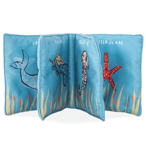 Un libro de tela diferente para sumergirnos en el fondo del mar. Aletas y burbujas es un libro de tela perfecto para iniciar el hábito de la lectura y fortalecer el vínculo con el bebé a través de la observación y del juego. Un formato ideal para estimular la curiosidad, la adquisición del lenguaje y la imaginación de manera lúdica y cercana al tiempo que se adquiere un vocabulario básico relacionado con la vida marina. Las ilustraciones sencillas y atractivas de Mercè Galí muestran algunas de las especies que pueblan el océano, compartiendo escena con un elemento vegetal que ayuda a relacionar esta propuesta con Pelos y plumas, libro publicado al mismo tiempo y dedicado a los animales de la granja. En ambos casos, el diseño cuidado y original los diferencia de otras propuestas publicadas para estas edades. Un formato seguro y duradero, confeccionado en tela lavable y resistente que se presenta en una atractiva caja de cartón ideal para regalar.