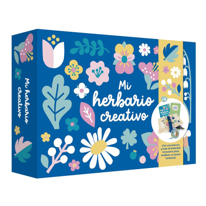 Incluye 8 hojas de papel secante, 4 hojas de pegatinas y etiquetas, 1 herbario para personalizar, 1 libro explicativo, 1 cinta adhesiva, 1 pinza y 1 prensa de madera con correa. Recomendado a partir de 5 años.