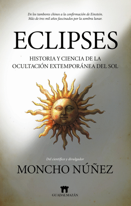 Eclipses documenta más de tres mil años de historia humana ante la desaparición del Sol: desde los sacrificios aztecas de personas albinas y los tambores chinos hasta las expediciones científicas que persiguieron la sombra lunar por todo el planeta. Moncho Núñez combina astronomía (geometría orbital, periodicidades, efectos físicos medibles) con episodios históricos verificables: tablillas de arcilla, el Códice de Dresde maya, los informes de Eddington en la isla de Príncipe y hasta el burro que rebuznó en Plasencia durante la totalidad del eclipse de 1900.